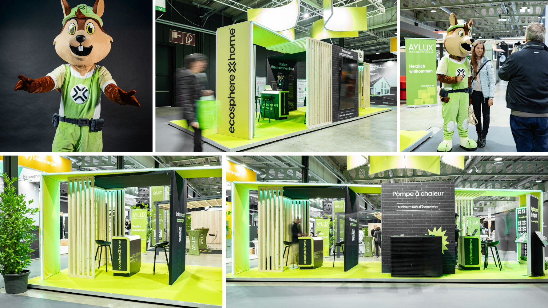 De l’idée à la modélisation, NOOSPHERE Brand Strategy a imaginé et donné vie à un concept fort pour Ecosphere Home. À l’occasion du salon Home Expo, la marque s’est démarquée avec un stand unique, porté par un symbole évident : la mascotte Ecoreuil pleine d’énergie pour incarner des solutions à la fois plus écologiques et plus économiques.